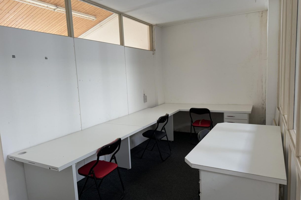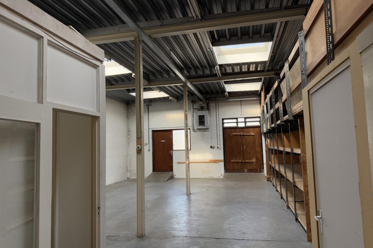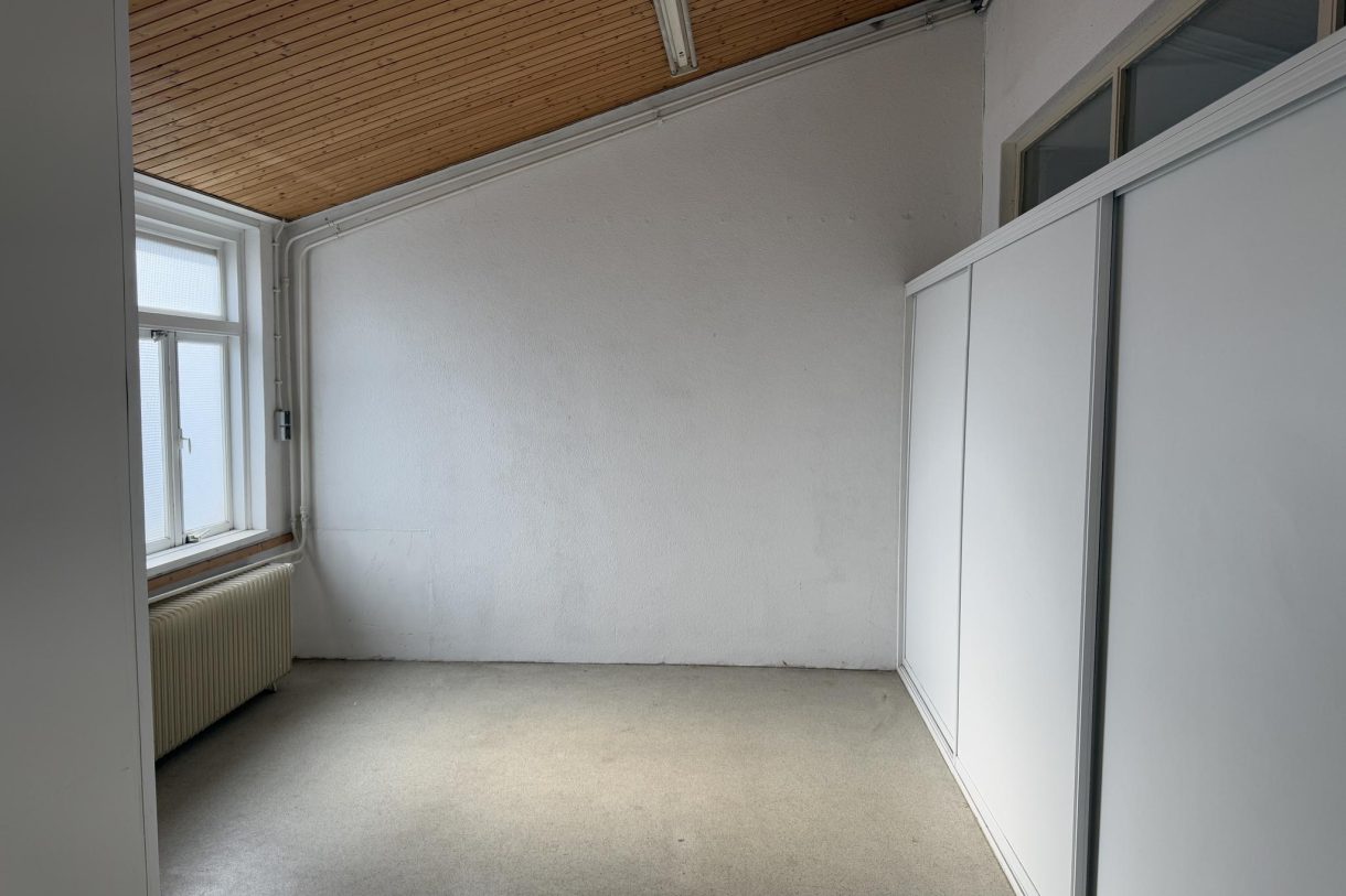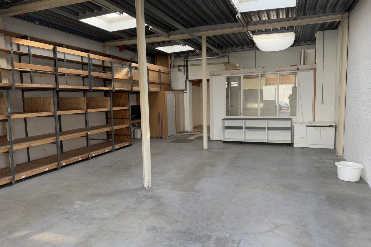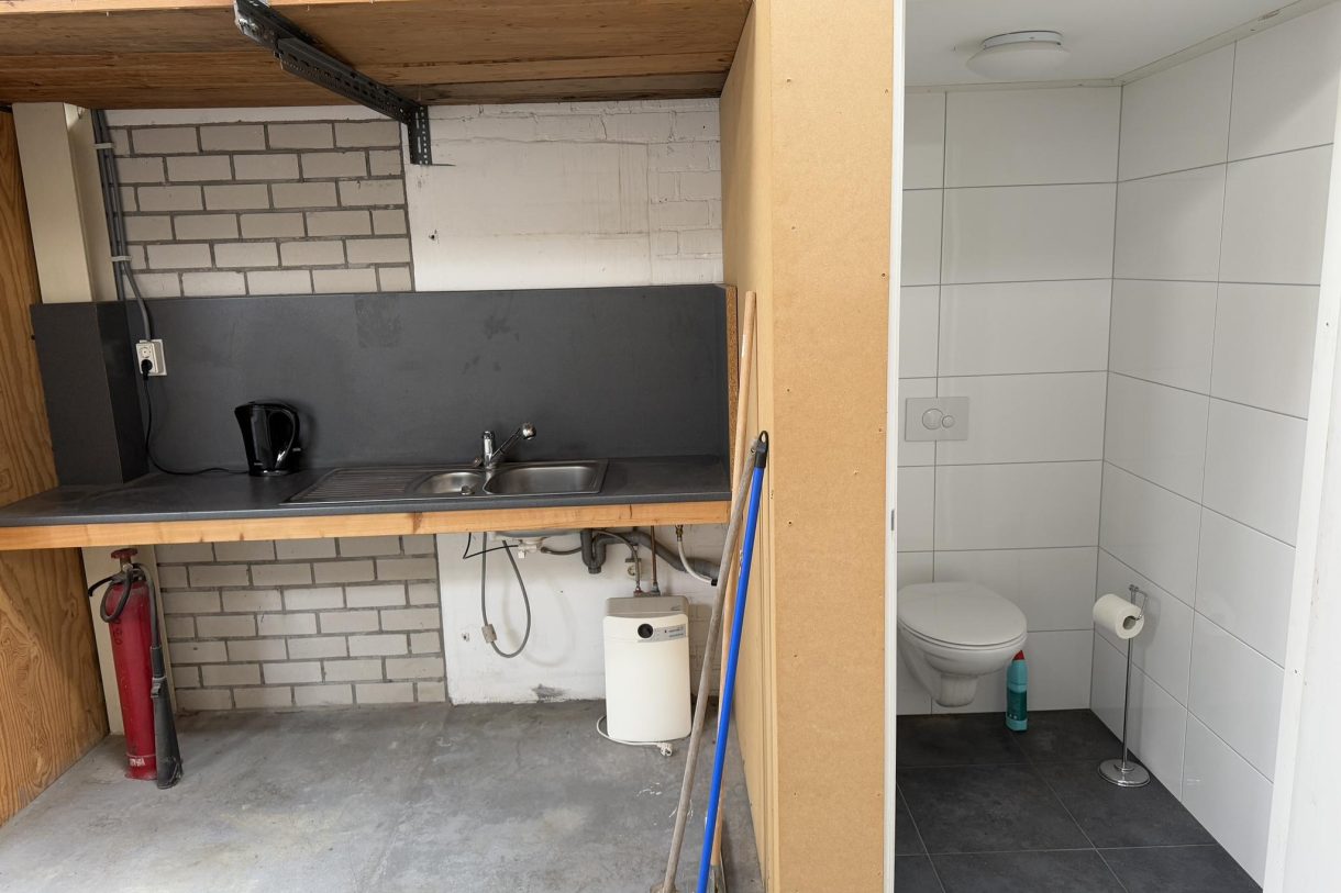 Entree, bedrijfsruimte van ca. 95 m2, pantry met keuken en toilet, 2 kantoorruimtes (circa 30mยฒ).