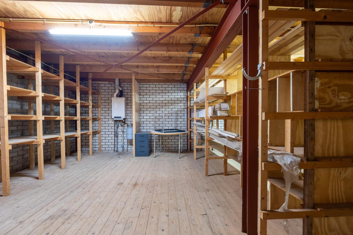 Op de eerste verdieping bevindt zich een comfortabele kantoorruimte, compleet met een magazijn en archiefruimte. Dit biedt niet alleen een afgescheiden werkruimte, maar ook de nodige opslagmogelijkheden.