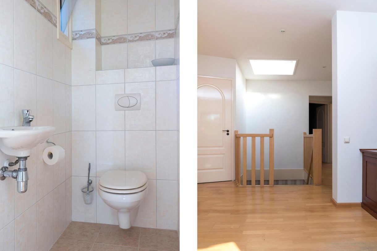 Entree / hal / toilet / woonkamer met tuin rondom / woonkeuken met inbouwapparatuur / bijkeuken / garage ca. 23 m2 / verdieping: overloop met werkhoek / vier slaapkamers waarvan één met loggia en één met grote inloopkast v.v. C.V-ketel en WTW unit / ruime badkamer met lichtkoepel, ligbad, aparte douche en wastafel.