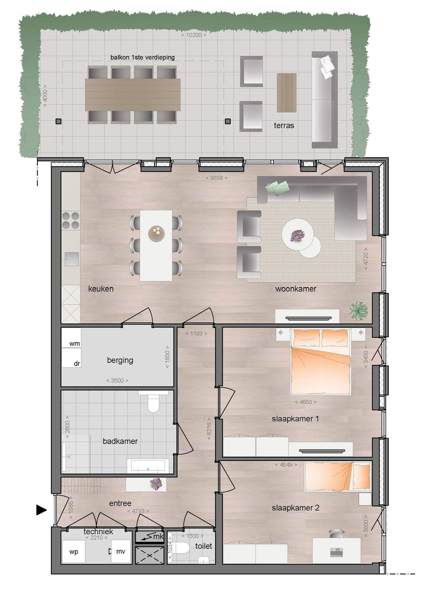 Ruim begane grond appartement van 116 m2 met flink zonnig terras, gelegen op het noord-westen van ca. 35 m2 met berging en parkeerplaats in de onderbouw. Start bouw najaar 2021, geplande oplevering voorjaar 2023. De woningen worden zeer energiezuinig en dit appartement beschikt over een warmtepomp die kan verwarmen en koelen via de vloerverwarming. Door 10 eigen zonnepanelen zal de energierekening lekker laag zijn. De appartementen worden compleet opgeleverd met sanitair maar zonder keukeninrichting.