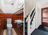 Entree, hal, toilet en toegang tot de lichte L-vormige woonkamer met open haard, een sfeervolle plek om te ontspannen. De woonkamer biedt direct toegang tot de zonnige achtertuin, net als de eetkeuken, die via de woonkamer en via de hal bereikbaar is.