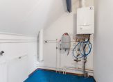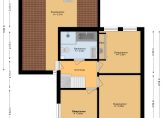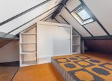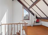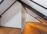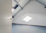 Via een vaste trap bereik je de ruime zolderverdieping (ca. 8 x 6,35 m). Hier bevinden zich een wasruimte en een vierde slaapkamer, met nog voldoende ruimte voor een hobby- of werkplek.