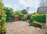 De zonnige achtertuin op het zuiden, die zowel via het huis als via een poort aan de eigen oprit te bereiken is, is een groot pluspunt: hier geniet je de hele dag van zon en privacy. Vanuit de tuin en de woning heb je bovendien een prachtig uitzicht op de stuwwal, wat zorgt voor een uniek gevoel van ruimte en natuur. Er staat een aparte schuur in de tuin en er is een mooie vijver aangebracht.ย