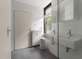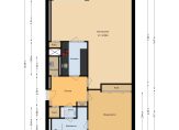 De slaapkamer en de badkamer zijn eveneens via de hal bereikbaar. De slaapkamer is flink bemeten, ca. 15 m2 groot. De badkamer is modern en voorzien van een inloopdouche, dubbele wastafel, een wasmachine-aansluiting en een apart toilet.