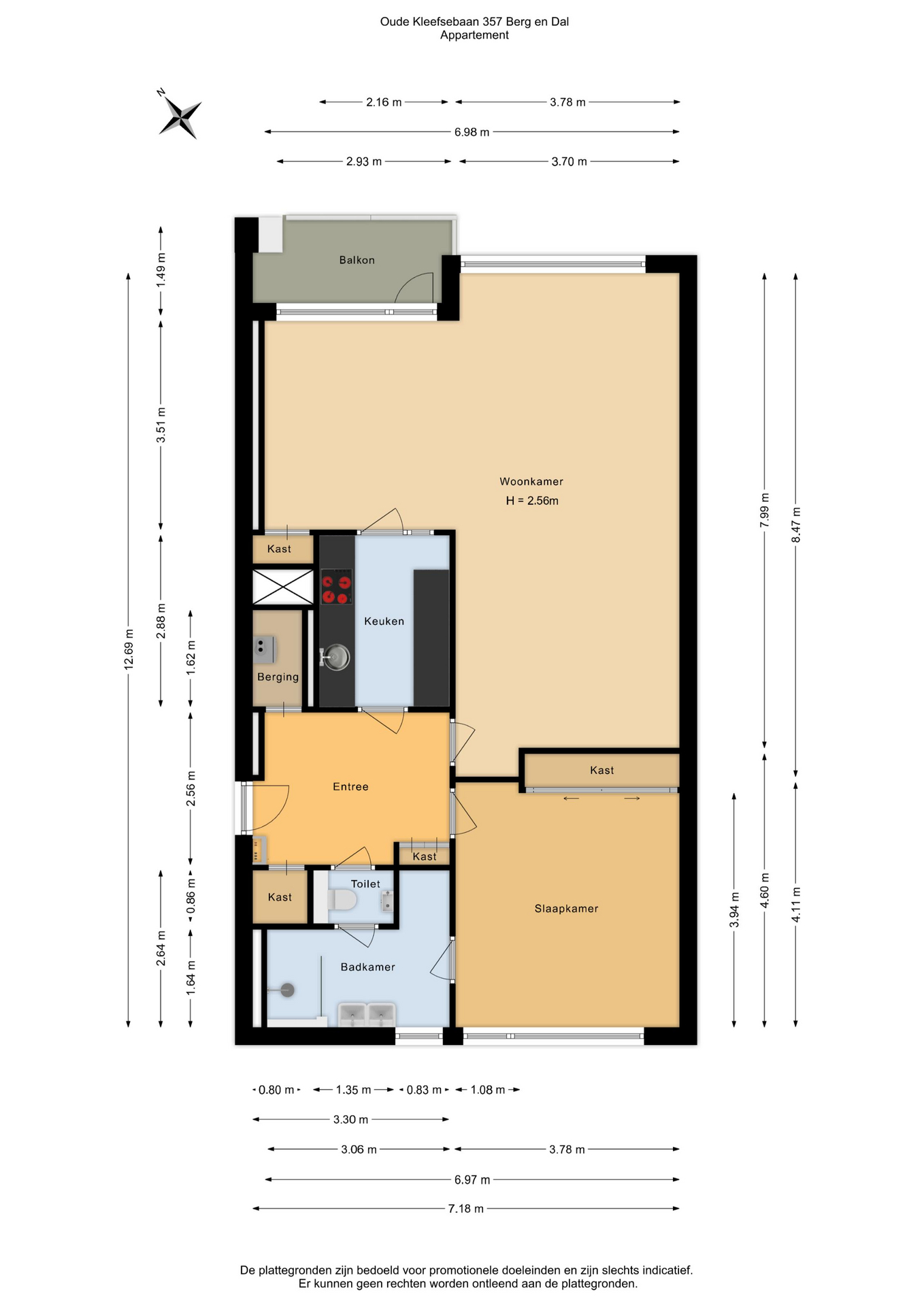 Te koop: ruim, goed onderhouden tweekamerappartement van ca. 87 m2, op de 5e woonlaag van het appartementencomplex “Groot Berg en Dal”, met eigen berging en garagebox.