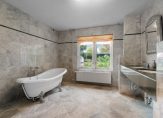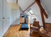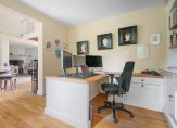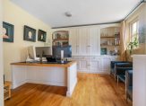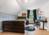 De riante woonkamer met grote schouw en deels open vide straalt warmte en sfeer uit. Daarnaast is er een aparte studeerkamer. De stijlvolle badkamer is uitgerust met een ligbad op pootjes, inloopdouche en twee vaste wastafels.