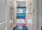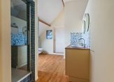 Een ruime L-vormige kamer biedt de mogelijkheid om twee extra kamers te creรซren. Via een brug bereikt u nog twee slaapkamers, elk voorzien van vaste wastafel en met iedere kamer eigen toegang tot een douche.