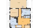 Entree met toilet, waskamer, hobbyruimte en gezellige relax ruimte met kachel. Ideaal als ontspanningsplek voor opgroeiende jeugd of gastenverblijf.