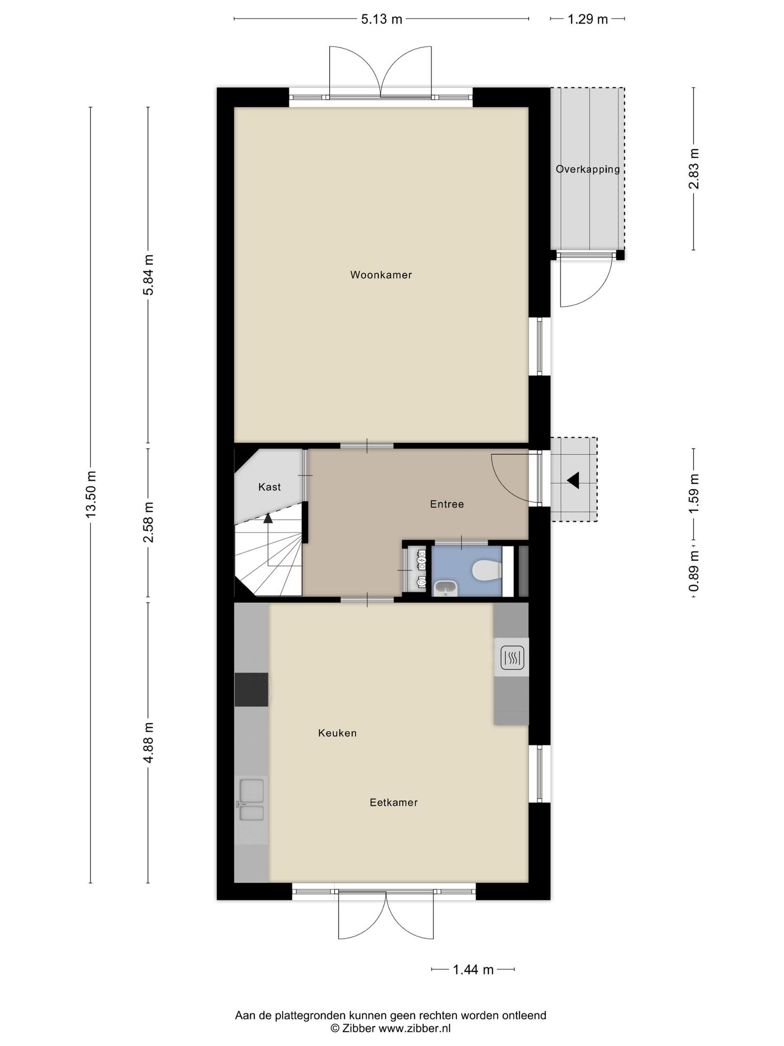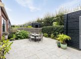Indeling: Entree / hal met meterkast (9 groepen + 3x aardlekschakelaar + glasvezel) / toilet met inbouwreservoir en fontein / provisiekast / woonkamer met eiken visgraatvloer tapis gelegd en openslaande deuren naar de achtertuin / luxe royale woonkeuken met een leistenenvloer met vloerverwarming voorzien van een 6-pits gasfornuis, oven, afzuigschouw, combimagnetron, vaatwasser, grote koelkast en vriezer, apothekerskast en openslaande deuren naar de voortuin / achtertuin op het zuiden met een vrijstaande houten berging met elektra en achterom.