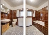Indeling: Entree / hal met open trap naar 1e verdieping / vestibule met meterkast (5 groepen, dubbele groep, 2x aardlekschakelaar) / slaapkamer met eikenhouten vloer en openslaande deuren naar tuin / uitgebouwde slaapkamer met eiken vloer, convector put en openslaande deuren naar de tuin / badkamer voorzien van ligbad, toilet en vaste wastafel / keuken voorzien van inductiekookplaat, combi-oven, vaatwasser, koelkast en vriezer / woonkamer met provisieruimte en openslaande deuren naar de tuin / bijkeuken met verwarming, stookruimte (Nefit HR CV anno 2021) en wasmachine aansluiting / royale vrijstaande stenen garage met elektra en extra loopdeur.
