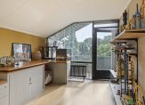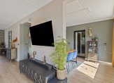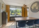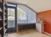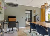 Indeling: Entree/ hal / meterkast (7 groepen + 2x dubbel 220, 2x krachtgroep, glasvezel) / modern toilet met inbouwreservoir en fontein / ruime woonkamer met PVC-laminaat, vloerverwarming, pellet kachel en aluminium schuifpui naar de achtertuin / eetkamer met airconditioning die kan verwarmen en koelen voor de gehele begane grond / dichte keuken met kunststof aanrechtblad voorzien van inductie kookplaat, afzuigkap, Siemens vaatwasser, combi-oven, oven en koel-vriescombinatie / berging met aansluitingen voor wasmachine en droger en verwarming / fraai aangelegde achtertuin met elektrisch zonnescherm, overkapping en achterom.