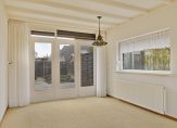 * Een prettige lichte woonkamer met openslaande deuren en zijraam;