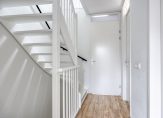 1e verdieping: Overloop met vaste trap naar 2e verdieping / 3 royale slaapkamers met laminaatvloer en vloerverwarming / moderne badkamer met vloerverwarming voorzien van inloopdouche, dubbel wastafelmeubel, 2e toilet met inbouwreservoir en elektrische designradiator.