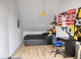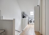 2e verdieping: Voorzolder met Velux dakvenster, opstelling voor wasmachine en droger, stookruimte (Intergas CV anno 2020), mechanische ventilatie en bergruimte / royale slaapkamer met laminaatvloer en Velux dakvenster.