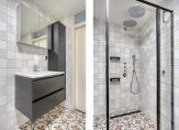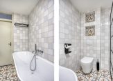 1e Verdieping: Overloop met vaste trap naar zolder / ouderslaapkamer met toegang tot het balkon / recent vernieuwde luxe badkamer voorzien van inloopdouche met dubbele douchekop en inbouwkraan, 2e toilet met inbouwreservoir, ligbad met inbouwkraan, wastafelmeubel, elektrische vloerverwarming en mechanische ventilatie / twee slaapkamers aan de voorzijde.