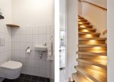 1e verdieping: Overloop met vaste trap naar 2e verdieping eveneens v.v. upstairs trapbekleding / 3 slaapkamers allen voorzien van vloerverwarming, horren en luxaflex / badkamer met vloerverwarming voorzien van inloopdouche met drain, wastafelmeubel, 2e toilet met inbouwreservoir, elektrisch handdoek radiator en een raam welke eveneens voorzien is van een hor.