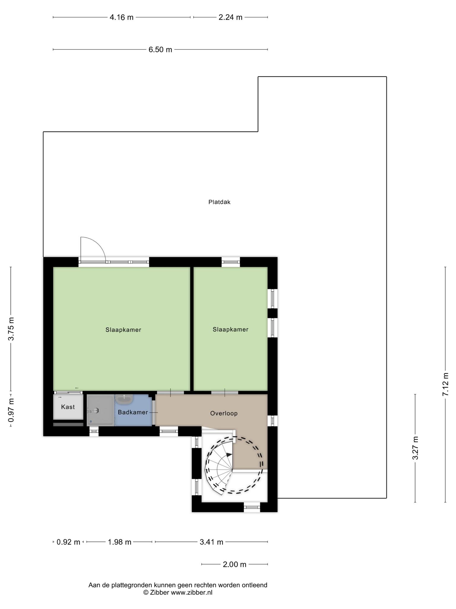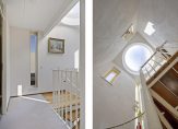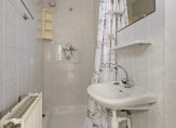 1e verdieping: Overloop / slaapkamer / badkamer met douche en vaste wastafel / ruime slaapkamer met deur naar het platdak.