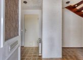 Indeling: Entree / ruime hal met garderobe ruimte en meterkast (5 groepen + aardlekschakelaar) / bijkeuken met boiler, vaste wastafel, verwarming en aansluitingen voor wasmachine en droger / grote garage met smeerput en elektrische overheaddeur, deze garage is ook vanaf de achterzijde van de woning bereikbaar.