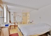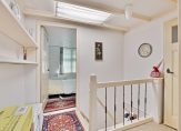 1e verdieping: Overloop met lichtkoepel en berging (badkamer mogelijk) / royale slaapkamer aan de voorzijde met laminaatvloer, inbouwkast en balkon / royale slaapkamer aan de achterzijde met laminaatvloer en vaste wastafel.