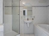 1e verdieping: Overloop met vaste trap naar de zolder / 2 slaapkamers, waarvan 1 met rolluik / badkamer met vloerverwarming voorzien van douchecabine, ligbad, 2e toilet met inbouwreservoir en een vaste wastafel / kast met wasmachine aansluiting / royale ouderslaapkamer met uitzicht over het park.