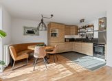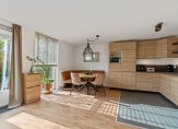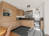 Via de entree kom je binnen in de hal, die toegang biedt tot alle vertrekken. De ruime woonkamer heeft een open keuken en is hierdoor erg ruim. Dankzij de vele raampartijen heb je hier ook veel lichtinval. De keuken is voorzien van diverse inbouwapparatuur en biedt volop werk- en opbergruimte – ideaal voor wie graag kookt of gezellig dineert met vrienden.