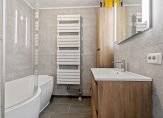De woning beschikt verder over twee goed bemeten slaapkamers, een badkamer met douche en wastafel, en een separaat toilet. Daarnaast is er een handige berging met wasmachineaansluiting.
