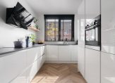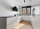 Begane grond: Entree met hal, meterkast en modern toilet met fonteintje. Vanuit de hal stap je de ruime L-vormige woonkamer binnen. Deze is voorzien van een trapkast en heeft toegang tot de tuin op het noordwesten. De stijlvolle visgraatvloer met vloerverwarming maakt het geheel compleet. De moderne open keuken is volledig uitgerust, met o.a. een inductie kookplaat, afzuigkap, vaatwasser, Quooker, koelkast, vriezer, oven รฉn magnetron.
