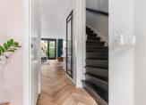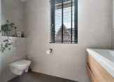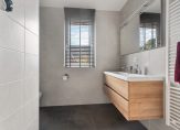 Eerste verdieping: Drie ruime slaapkamers, allen met dezelfde fraaie visgraatvloer. De luxe badkamer beschikt over een dubbele wastafel, inloopdouche, toilet en vloerverwarming.