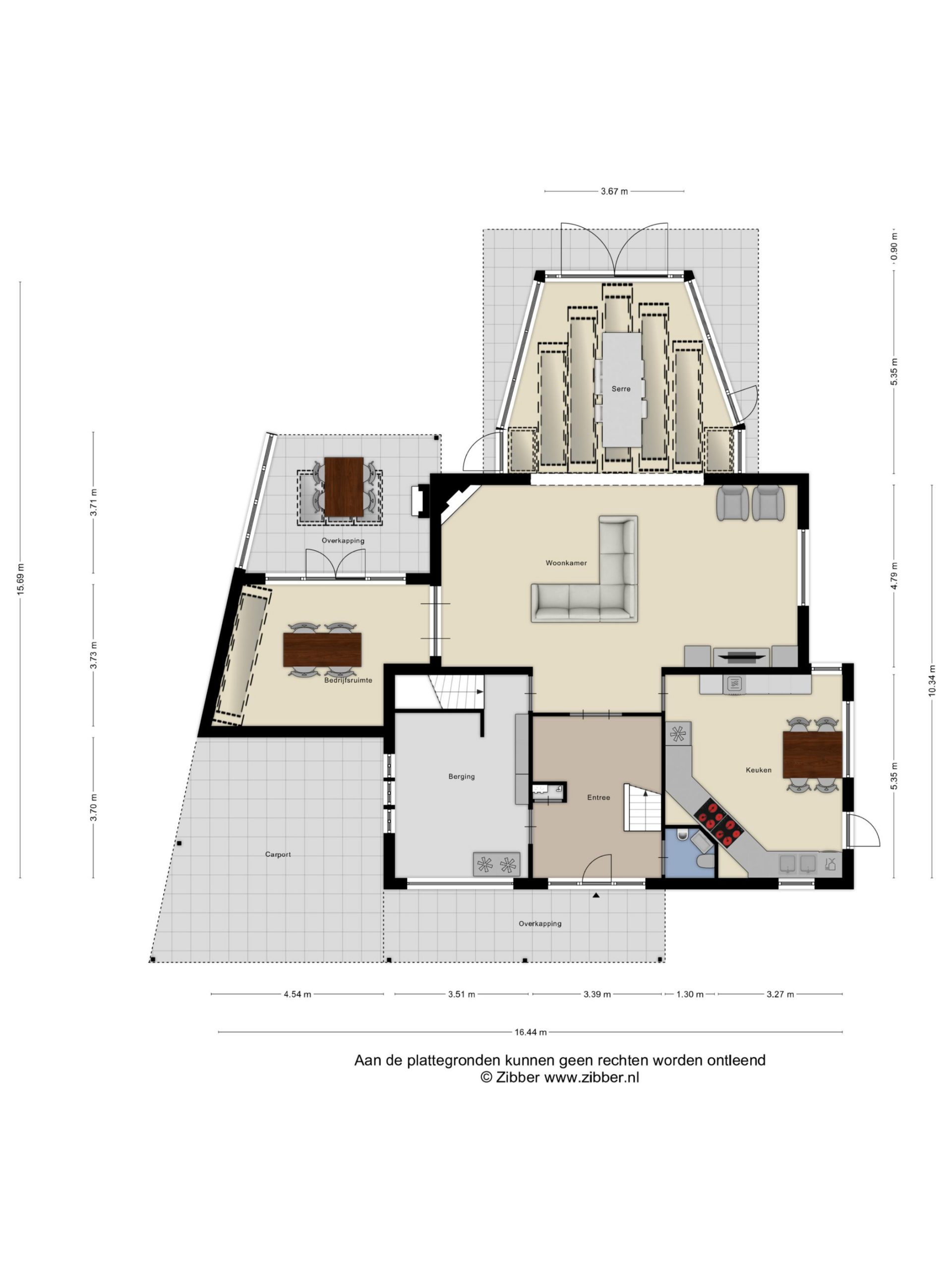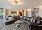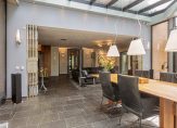 De royale entree leidt naar een lichte hal en een sfeervolle T-vormige woonkamer met een serre. De totale oppervlakt evan de woonkamer en de serre bedraagt ruim 70 m2.