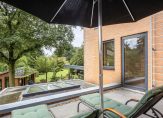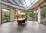 De aangrenzende eetkamer beschikt over openslaande deuren naar het overdekte terras met open haard, en een fraaie natuurstenen vloer, een heerlijke plek om het hele jaar door van binnen รฉn buiten te genieten.