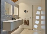 Ruime overloop met toegang tot een stijlvolle master bedroom met ingebouwde TV-kast, pvc-vloer en luxe badkamer en suite met Sunshower, inloopdouche, ligbad, Geberit douchetoilet en dubbele wastafel.