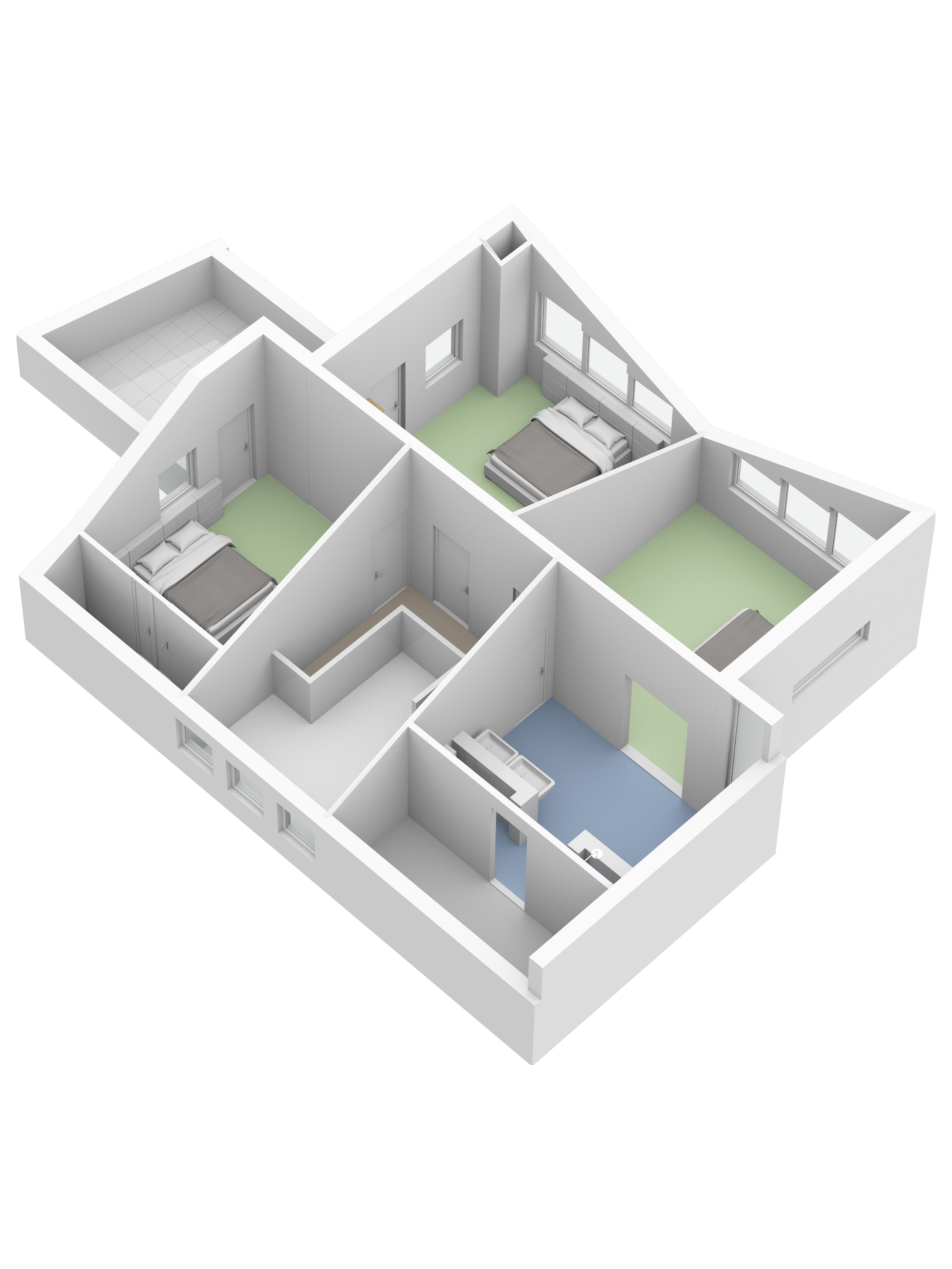 Daarnaast bevinden zich nog twee grote slaapkamers, beide met toegang tot een royaal dakterras.