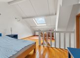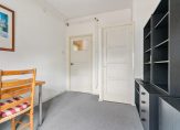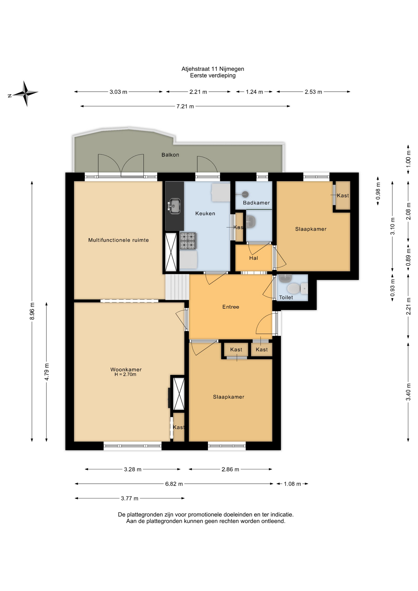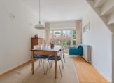 Via de trap kom je bij de entree op de eerste verdieping: ruime hal met handige inbouwkasten en een apart toilet. De lichte doorzonwoonkamer met parketvloer en gezellige gashaard loopt door naar de eetkamer met openslaande deuren naar het balkon. Het balkon aan de achterkant kijkt uit over groene binnentuinen. De keuken, die ook toegang geeft tot het balkon, is voorzien van eenvoudige apparatuur. Vervolgens loop je via de overloop verder naar de badkamer. De badkamer beschikt over een douche en een wastafel. Verder zijn er twee slaapkamers met inbouwkasten gerealiseerd en via een vaste trap kom je op de zolderkamer(is derde slaapkamer) met houten vloer en cv-ketel (2013).