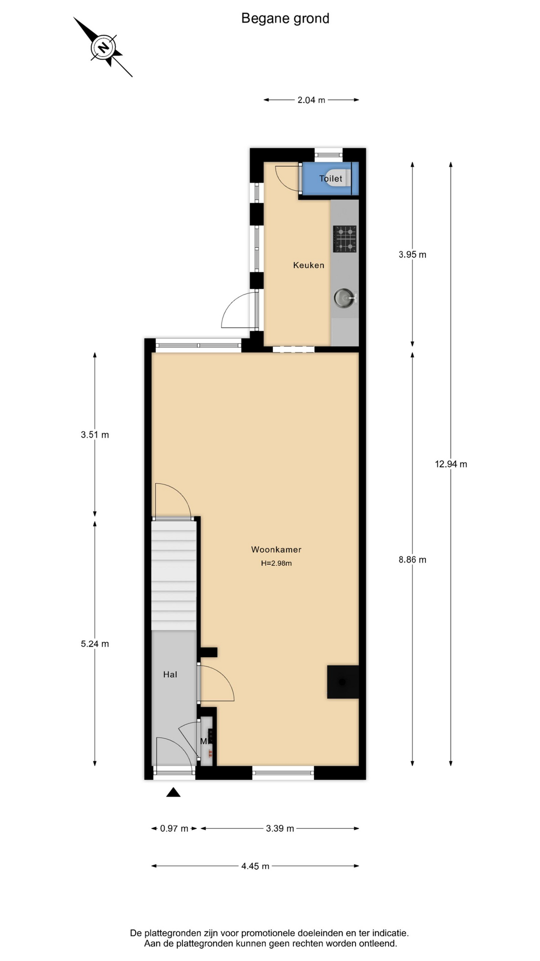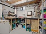 Entree / gang met granito vloer / L-woonkamer met houten vloer en kachel (optioneel) / keuken / toilet / deur met vaste trap naar hobbykelder met veel opslag mogelijkheid, aanrecht en was- en droog aansluiting / grote, praktische bergruimte.