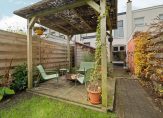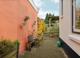 * Diepe tuin die door de aaneengesloten bebouwing veel rust en privacy biedt. Pergola als schaduw terras en overkapping over gehele breedte waar je heerlijk in de avondzon kunt zitten. Tevens grote berging en achterom;