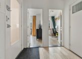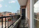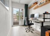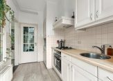 Entree op de tweede verdieping. Vanuit de hal zijn de twee slaapkamers, de badkamer en de woonkamer toegankelijk. De beide slaapkamers bieden toegang tot het zonnige balkon op het westen, waar tevens een kast is gesitueerd met de opstelling van de CV-installatie. De lichte en ruime woonkamer staat in directe verbinding met de keuken, die voorzien is van de nodige apparatuur.