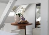 Binnen is elk detail doordacht. Hoogwaardige materialen, slimme indeling, en een sfeer die tegelijk stijlvol en warm is. Grote ramen zorgen voor een constante verbinding tussen binnen en buiten. En ’s avonds? Dan wordt dit penthouse pas écht magisch
