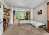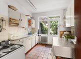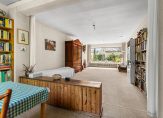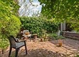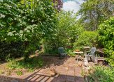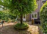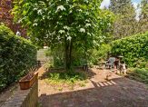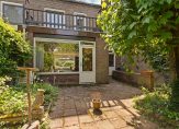 * perceel 209 m2, de tuin achter de aanbouw is ca. 8,5 m diep en ligt op het noorden waar op hete dagen de schaduw te vinden is. Als de huidige bewoners in voor- en najaar in de zon wilden gebruikten zij het zitje in de ruime voortuin die genoeg privacy biedt;