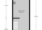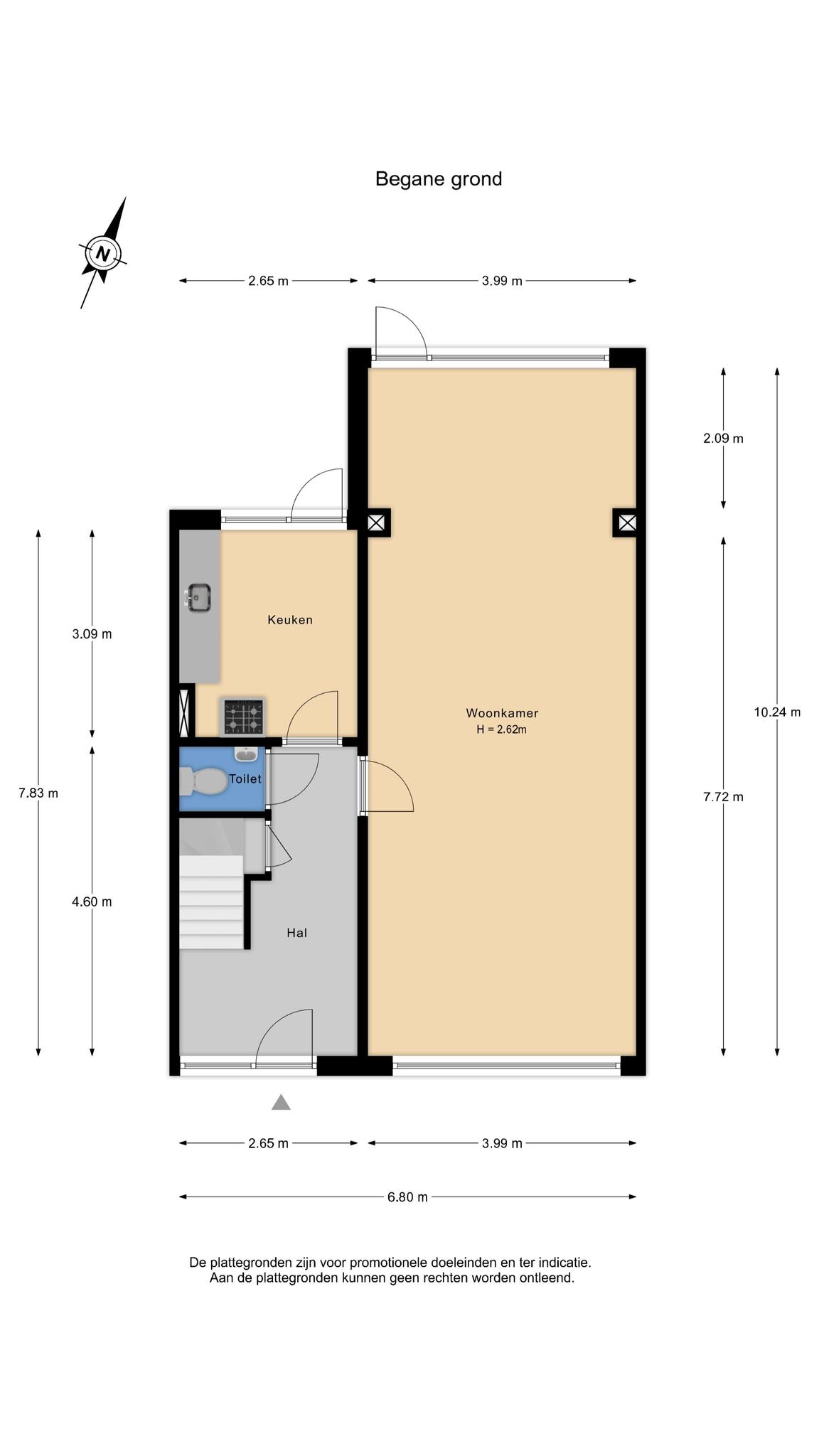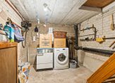 Begane grond: entree, royale gang, toilet, toegang naar de kelder welke zich onder de gang en de keuken bevindt ca. 22 m² met een buiten ingang naar de achtertuin. In de kelder bevindt zich de C.V.-ketel (oud). Op de begane grond is een uitgebouwde woonkamer ca. 10 x 4m en een eenvoudige dichte keuken met de originele Bruynzeel inrichting.