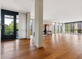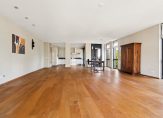 De riante woonkamer met houten vloer en open Siematic-keuken biedt volop leefruimte en comfort.