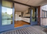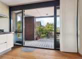 Via openslaande deuren bereikt u het zonnige balkon van ca. 10 mยฒ, gelegen op het westen met fraai uitzicht over de Rembrandtstraat en de ondergaande zon.