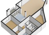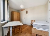 De woning beschikt over รฉรฉn slaapkamer met schuine wand en vaste kast, en een ruime tweede slaapkamer met inloopkast.