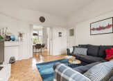 Het fijne van een woning uit de jaren 30 is dat het voldoende bergruimte kent. Bijna alle vertrekken hebben de beschikking over vaste kasten. Het zitgedeelte heeft naast de inbouwkasten ook nog een originele schouw.