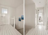 In de hal is ook de trap naar de 1e verdieping. Vanuit de hal op de verdieping zijn de keuken en de woon- en eetkamer- en suite bereikbaar. Via de woonkamer is het toilet aan de voorzijde bereikbaar. Ook is hier de trap gesitueerd naar de 2e verdieping met maar liefst 3 slaapkamers, badkamer en tweede toilet! De aansluitingen voor de was en droogcombinatie zitten ook op de eerste verdieping. Deze bevindt zich tussen de keuken en de trap.
