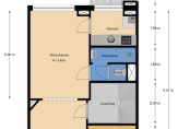 Entree/hal, lichte woonkamer met glas in lood aan de voorzijde en open keuken en dichte keuken aan de achterzijde welke is voorzien van een moderne inrichting inclusief diverse apparatuur. Het balkon is te bereiken middels een deur vanuit de keuken. Via de woonkamer bereik je de aparte toiletruimte met wandcloset, wastafel en inloopdouche. De slaapkamer zit aan de voorzijde. Het appartement is deels voorzien van een doorlopende houten tapis parketvloer (eiken). De keuken en de badkamer zijn voorzien van Belgisch hardsteen vloer.