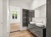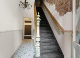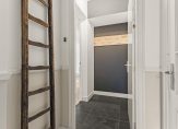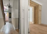 Via de voordeur kom je in de gezamenlijke entree met je eigen meterkast en de gang naar je eigen voordeur. In deze gang bevindt zich ook de trap naar de eerste verdieping. Bij binnenkomst kom je in je eigen hal waar er ruimte is voor je jassen en schoenen. Hier bevindt zich ook het toilet met fonteintje en de deur naar de woonkamer. Authentieke details vind je terug in de vorm van het hoge plafond in de hal, de tegelvloer, de houten deuren en het houtsnijwerk van de trap.