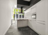De woonkamer bestaat uit een voor en middengedeelte. Deze wordt gescheiden door een prachtige en-suite met schuifdeuren. Het plafond is maar liefst 3,13 meter hoog! De breedte maat is bijna 4 meter en de hele diepte maat maar liefst 17 meter. Hierdoor heb je in combinatie met de hoogte een super ruimte. De indeling is naar eigen smaak in te richten door deze afmetingen. De vloer is afgewerkt met een mooie parketvloer. De open keuken ligt aan de achterzijde en heeft alle denkbare apparatuur. Het heeft een kookeiland met een inductiekookplaat, een vaatwasser, een koel-vriescombinatie, combi-oven en een afzuigkap die naar buiten gaat. Een pluspunt van deze ruimte is dat er een drietal dakramen liggen waardoor je veel licht krijgt in de keuken. Â
