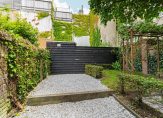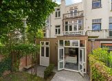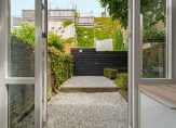 De benedenwoning beschikt over een voor- en achtertuin. De voortuin ligt op het westen en de achtertuin op het oosten. Zo heb je altijd een plekje in de zon en in de schaduw. Het deel voor de erker aan de voorzijde behoort tot de benedenwoning maar het pad en de plek voor de fietsen is gemeenschappelijk.