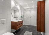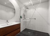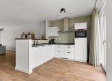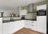 De keuken is van alle gemakken voorzien, zoals een koelkast, vaatwasser, inductiekookplaat, oven, afzuigkap en veel opbergruimte verder beschikt het appartement over twee slaapkamers en een luxe badkamer voorzien van inloopdouche, toilet, wastafel met ombouw en kast.