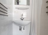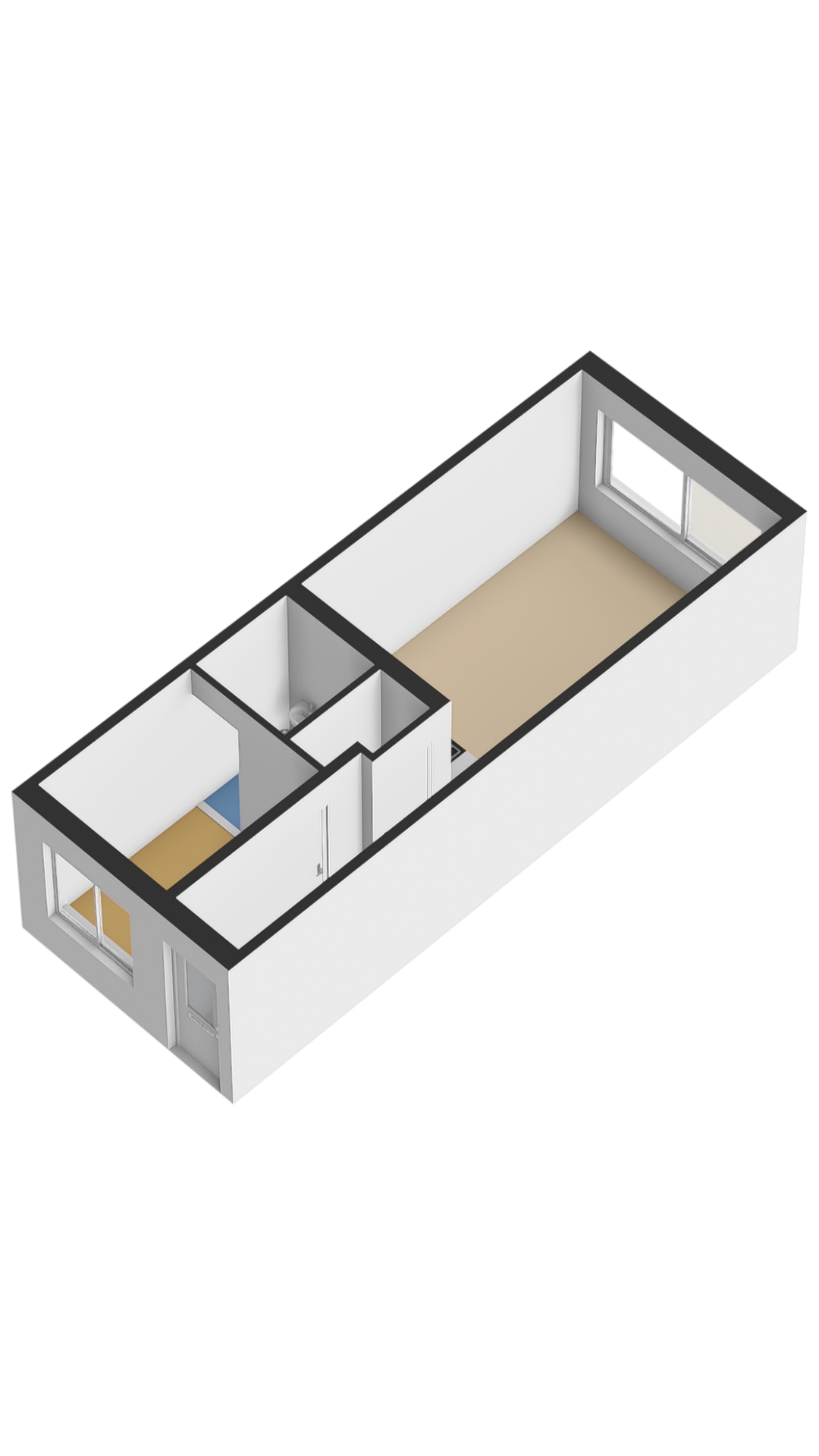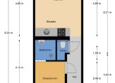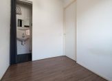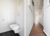 Eerste verdieping: gemeenschappelijke binnentuin op de woonlaag waardoor je toch buiten kunt zitten. Deur naar het appartement / entree / gang / woonkamer van ca. 17 mยฒ met open keuken voorzien van een koelkast, combi oven, afzuigkap en een wasmachineaansluiting / apart toilet / slaapkamer met doorloop naar de badkamer met een douche en wastafel.
